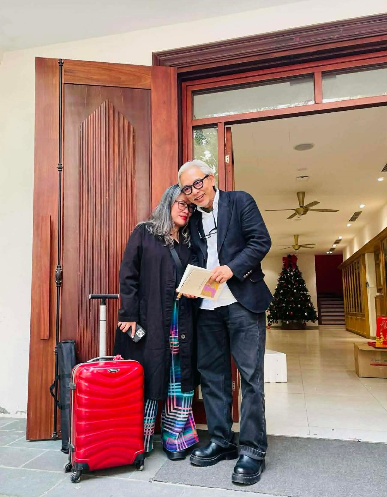 Nhà văn Bùi Mai Hạnh và nhiếp ảnh gia Dương Minh Long gặp lại nhau tại Hà Nội, nhân dịp chị ra sách Người xé mặt nạ. Ảnh: Nhà văn Bùi Mai Hạnh cung cấp.