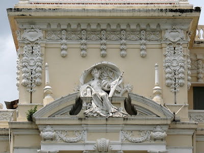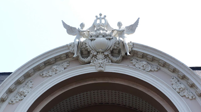 ]Riêng phù điêu nữ thần Erato cũng lập lại với kích thước lớn hơn ở hai bên hông nhà hát trên trán cửa của balcon.