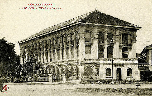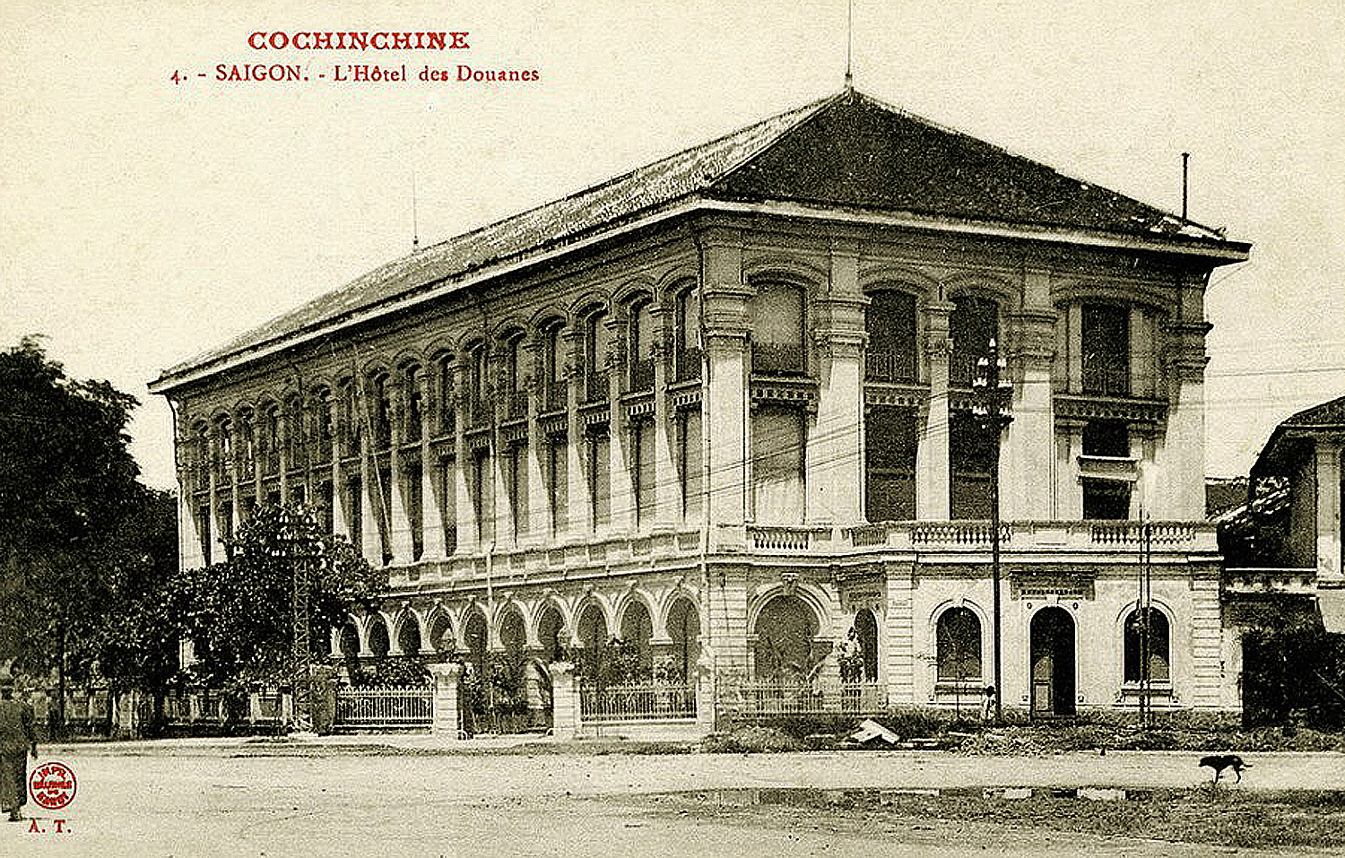 Trụ sở Thuế và Hải quan (Direction des Douanes et Régies hay Hôtel des Douanes) gọi nôm na là ‘Nhà Đoan’, toạ lạc ở số 2 Hàm Nghi bến Bạch Đằng, nay là Hải quan TP HCM, do kiến trúc sư Alfred Foulhoux xây xong năm 1887. Thực ra Foulhoux tái thiết lại từ toà nhà có tên Hôtel Wang-Tai hay Nhà Vương Thái đã xây từ năm 1867, sau đó trở thành khách sạn Cosmopolitan theo kiểu châu Âu to lớn và sang trọng nhất Sài Gòn, trước cả khi chính quyền thuộc địa xây bất cứ công thự đồ sộ nào. Vương Thái là thương nhân người Quảng Đông giàu có bậc nhất thời đó nhờ độc quyền buôn bán thuốc phiện ở Nam Kì từ 1861-1881 (đây là thời cơ ngàn vàng của Vương Thái sau Chiến tranh Nha phiến và trước khi Pháp và nhà Thanh kí Hiệp ước Thiên Tân 1885). Nhưng kể từ năm 1881, Pháp độc quyền kiểm soát, chế biến và buôn bán thuốc phiện, thì nguồn lợi to lớn này đã từ Vương Thái chuyển qua tay chính quyền thuộc địa, và trở thành doanh thu quan trọng nhất của chính phủ Nam Kì thời đó. Thương gia Vương Thái đã chuyển địa bàn sang Chợ Lớn và bán toà nhà của ông cho chính quyền Pháp để làm trụ sở Thuế và Hải quan, và gần ngay đó, Pháp cũng cho xây một xưởng chế biến thuốc phiện (xem hình) cung cấp cho những động hút ở những khu vực Sài Gòn và Chợ Lớn. Do vậy, cây nha phiến là biểu tượng chính trên khắp mặt tiền ‘Nhà Đoan’ kể từ khi kiến trúc sư Foulhoux thiết kế lại.