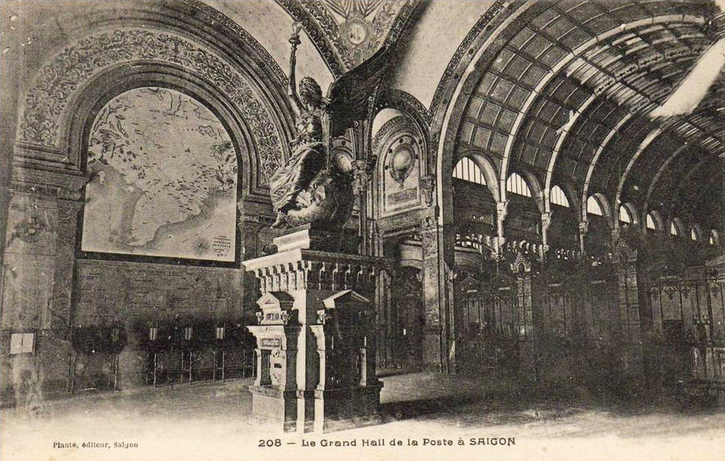 Giữa đại sảnh của Bưu điện trước đây có pho tượng nữ thần Iris ngồi trên quả địa cầu với đôi cánh và tay giương ngọn đuốc– nữ thần này là sứ giả của các vị thần trên đỉnh Olympus, một trong những nữ thần của trời và biển, bay bằng tốc độ của gió đi khắp thế giới. Nữ thần này được Pháp chọn làm biểu tượng cho ngành bưu điện, nhưng pho tượng đẹp này vào những năm 1950 đã bị tháo gỡ mất tăm tích.