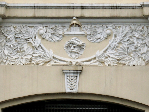 Trên các đầu cột giữa những nhịp vòm cửa là những phù điêu Poseidon (Neptune) thần ngựa và thần biển; và Nike, nữ thần chiến thắng và tốc độ.