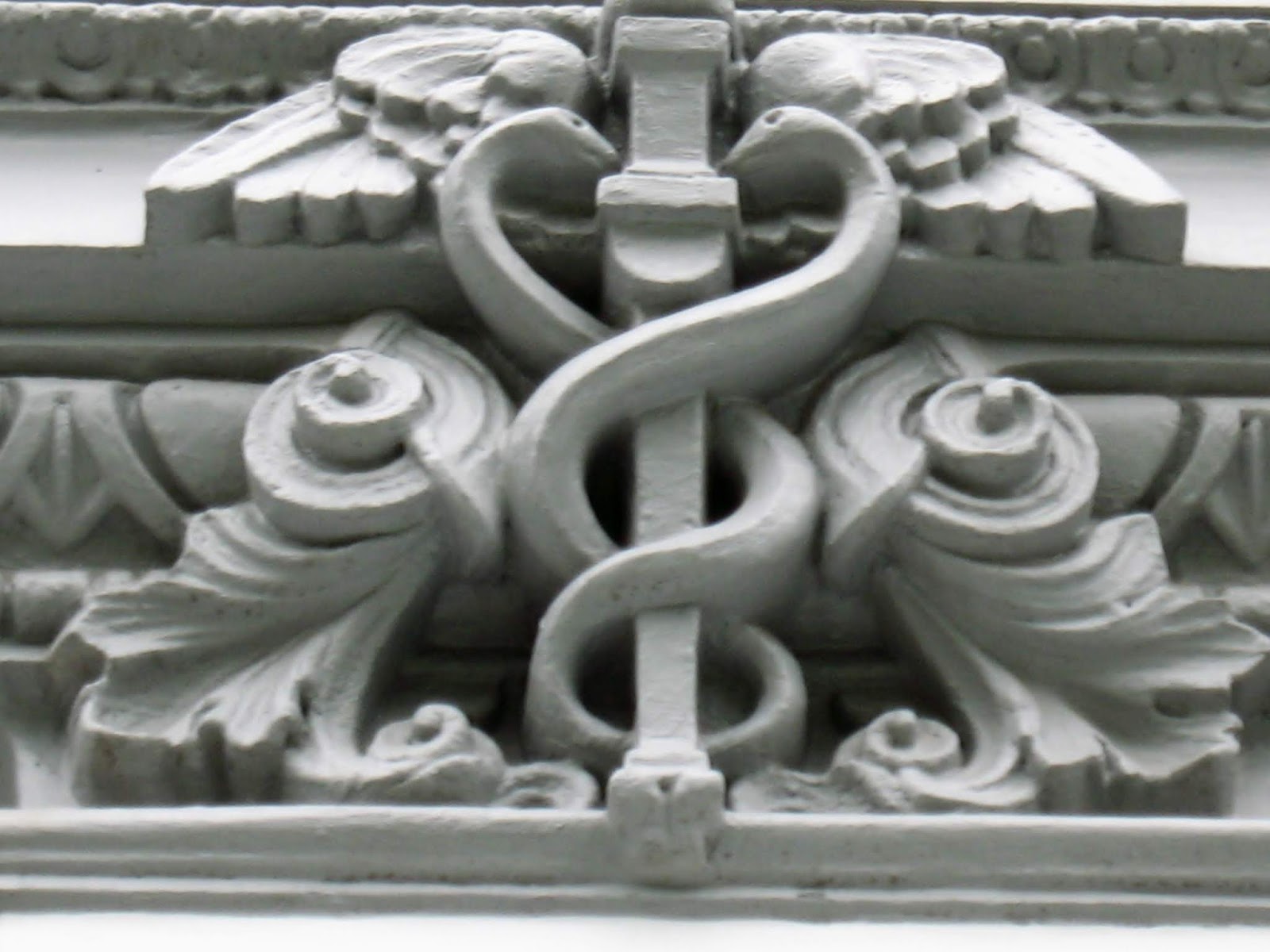Cây trượng của thần Hermes với đôi cánh và cặp rắn xoắn ý nghĩa cho sự cứu trị trong y học, và hoạ tiết lá cây ô rô xoắn ý nghĩa cho sự sống và may mắn. Ngành Tây y, hay việc vệ sinh chống dịch lây nhiễm luôn được thực dân Pháp đề cao là sự văn minh ở những xứ thuộc địa vùng nhiệt đới.