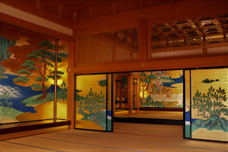 Nếu bạn từng đi vào nội thất sâu nhất của những dinh thự đồ sộ, nơi chốn thâm u mà ánh mặt trời không chiếu tới, chắc bạn sẽ được thấy tấm cửa kéo hoặc bình phong dát vàng đón bắt một tia sáng le lói xa xăm từ ngoài vườn ra sao, rồi bỗng nhiên toả ra một vầng sáng huyền ảo, một ánh hoàng kim mờ mờ hắt vào bóng tối bao trùm tựa ánh hoàng hôn nơi chân trời. Không thấy vẻ hoàng kim nào lại đẹp thanh tú đến như vậy. Rồi khi bạn bước qua, ngoái đầu nhìn đi nhìn lại, và khi bạn đi khỏi thì bề mặt dát vàng kim trên giấy lại càng toả xa hơn, nó không biến đổi trong chớp nhoáng mà toả sáng dần dần, đều đặn hơn, như thể người khổng lồ đổi màu trong cổ tích. Hoặc một lần nữa, bạn thấy lớp bụi vàng kim trên nền vào lúc đó chỉ là một nước bóng tẻ nhạt đang ngủ say, nhưng khi bạn lướt qua, đột nhiên chúng loé lên như thể rực cháy.