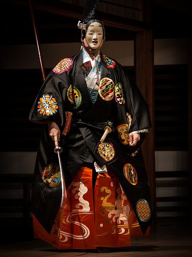 Bóng tối bao phủ trong tuồng Nō và từ đó vẻ đẹp nảy sinh vốn là một thế giới của những bóng âm riêng biệt mà ngày nay chỉ còn thấy trên sân khấu, nhưng trong quá khứ bóng tối ấy không tách khỏi đời sống thường ngày. Bóng tối của sân khấu tuồng Nō xét cho cùng chính là bóng tối kiến trúc trong căn nhà xưa; và trang phục Nō, ngay cả khi hoa văn và màu sắc có hoa mĩ hơn một chút, nhìn chung đều được mặc bởi giới quý tộc và các lãnh chúa chư hầu thời đó. Tôi thấy liên tưởng này thật quyến rũ: thử hình dung vẻ đẹp đó ra sao khi so với chúng ta ngày nay, người Nhật Bản xưa hẳn phải phục trang lộng lẫy, đặc biệt là các võ sĩ vào những thế kỉ 15 và 16. Tuồng Nō bày ra trước mắt chúng ta vẻ đẹp của nam tính Nhật Bản ở mức tuyệt đỉnh. Điều gì đã tạc nên những hình tượng hùng tráng về người võ sĩ xông pha chiến trường xưa, hẳn họ mang trên mình trọn vẹn bộ y phục lẫm liệt trang trí với gia huy, và trên phông nền tối, mẫu thiết kế gấm thêu ánh lên những khuôn mặt khí cốt dày dạn như ánh đồng sạm trong mưa gió dãi dầu. Những ai mê xem tuồng Nō đều tìm thấy một phần khoái cảm nào đó trong những duy đoán kiểu như vậy, vì sự liên tưởng rằng cái thế giới đầy màu sắc trên sân khấu ấy từng tồn tại như chúng ta thấy nó truyền vào tuồng Nō một niềm đam mê lịch sử hoàn toàn khác với kịch [Kabuki].