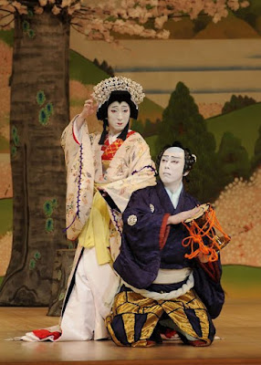 Trái lại, kịch Kabuki là một thế giới giả trang, không liên quan tới vẻ đẹp trong trạng thái tự nhiên. Thật không thể nhận thức được rằng vẻ đẹp phụ nữ thời xưa – không kể nam giới – lại có sự tương tự nào với phụ nữ ta thấy trên sân khấu Kabuki. Phụ nữ tuồng Nō, được diễn bởi những diễn viên đeo mặt nạ, khác xa với thực tế ngoài đời; nhưng nam diễn viên Kabuki trong vai một phụ nữ lại không truyền được chút cảm nhận nào về thực tế ngoài đời. Sự thất bại này do lỗi của ánh sáng quá mức. Khi không có đèn pha hiện đại, và khi sân khấu Kabuki được thắp sáng bằng thứ ánh sáng đạm bạc của nến và đèn lồng, thì các diễn viên hẳn đã phần nào thuyết phục hơn trong những vai nữ. Người ta than phiền rằng các diễn viên Kabuki không còn thực sự nữ tính, nhưng việc đó hầu như không phải lỗi do tài năng hay ngoại hình của họ. Giả sử các diễn viên [vai nữ] ngày xưa phải xuất hiện trên sân khấu sáng chói của ngày nay, chắc chắn họ sẽ nổi bật vẻ nam tính cứng cỏi mà trong quá khứ được che giấu kín đáo trong bóng tối. Điều này cho thấy một cách sống động khi tôi được xem diễn viên Baiko lớn tuổi trong vai Okaru trẻ tuổi. Việc sử dụng ánh sáng một cách vô nghĩa và quá độ, tôi cho rằng, đã phá huỷ vẻ đẹp của kịch Kabuki.