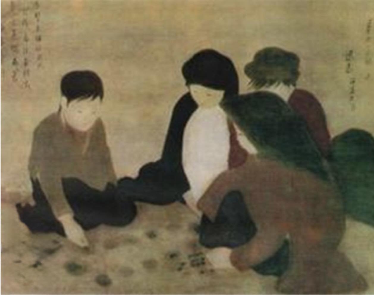 Tranh lụa “Chơi ô ăn quan” của Nguyễn Phan Chánh, triển lãm hội chợ thuộc địa, 1931