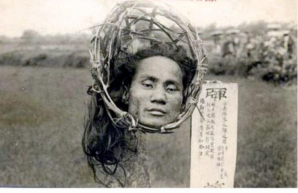 Thủ cấp Đặng Đình Nhân, liên quan vụ đầu độc Hà Thành, 1908 do Dieulefils chụp, thực mà siêu hơn siêu thực.