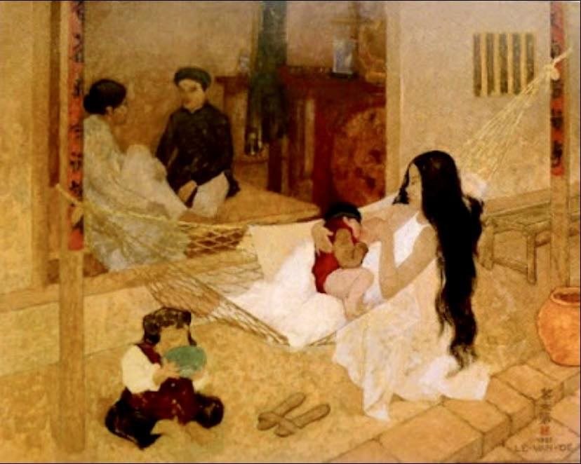 Hai thiếu nữ và em bé của Tô Ngọc Vân được giải thưởng trong triển lãm đấu xảo thuộc địa ở Paris, 1931