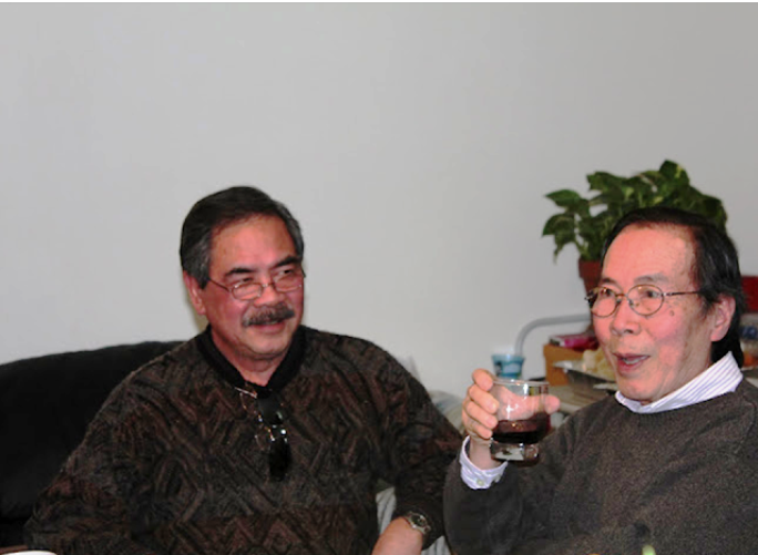 Đinh Cường (bên phải) đang đọc bài thơ ĐOẠN GHI ĐÊM CENTREVILLE