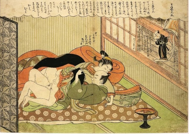 Chồng: Sau khi xem tranh xuân hoạ mà anh trai anh đem từ Edo về làm quà, anh nứng quá chừng.