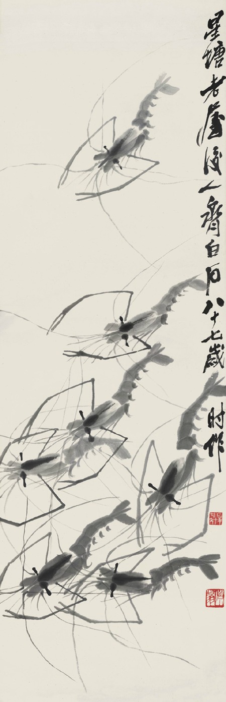 5. Tề Bạch Thạch, Tôm, tranh cuốn trục, mực trên giấy, 1949. 138 x 41.5cm. Bảo tàng Mĩ thuật Trung Quốc, Bắc Kinh