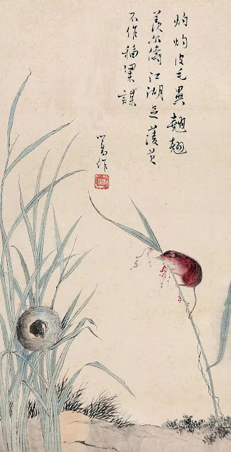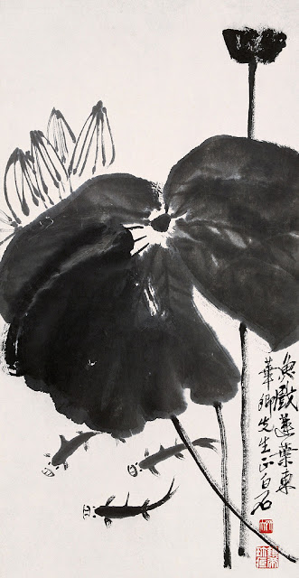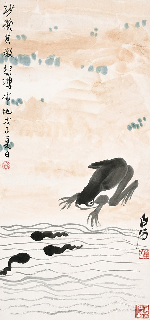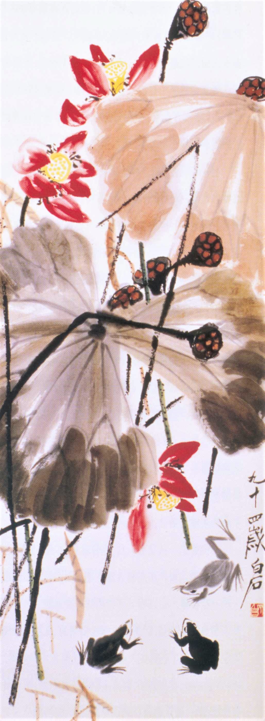6. Tề Bạch Thạch, Sen và chẫu chàng, tranh trục cuốn, mực và màu trên giấy, 1954. Vinh Bảo Trai, Bắc Kinh