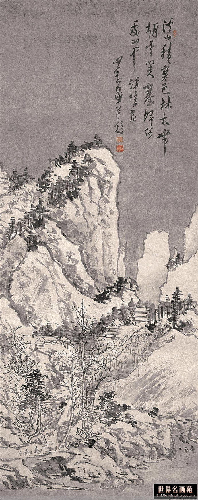 7. Tề Bạch Thạch, Sau cơn mưa, tranh trục cuốn, mực trên giấy, 1940. 137 x 61.5cm. Bảo tàng Nghệ thuật Thiên Tân