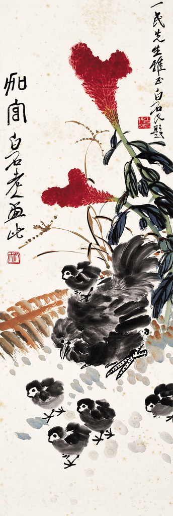 Tề Bạch Thạch 齊白石(1864–1957), tên Hoàng, hiệu Bạch Thạch Sơn Nhân, gọi tắt Bạch Thạch. Ông có nhiều biệt hiệu: khi xưng là “Mộc Nhân” đề nhắc đến thuở từng làm nghề mộc; khi xưng “Kí Bình” để miêu tả thân phận li hương, phiêu bạt như cánh bèo trên sông nước. Biệt danh “Tam Bách Thạch Ấn Phú Ông” chỉ việc sở hữu ba trăm cái ấn triện mà ông đã khắc, cho nên là “phú ông” về tinh thần và đức hạnh. Với hiệu “Hạnh Tử Ổ Lão Dân” miêu tả mình là một lão nông sống ở cố hương, một thôn nhỏ tên là Hạnh Tử. Ở tuổi trung niên, Tề Bạch Thạch vẫn còn sống thuê nhà ở vùng núi, vì vậy xưng mình là “Tá Sơn Ông” (ông lão mượn núi). Ông còn nhiều danh hiệu khác để thể hiện những giai đoạn nhất định về thân thế, cảm xúc, hay thái độ của ông về nhân sinh.