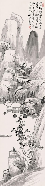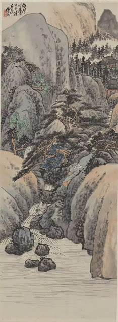 3. Trần Sư Tăng, Sơn thuỷ, tranh cuốn dọc, mực và màu trên giấy, 1915. 135.1 x 48.5cm. Bảo tàng Mĩ thuật Trung Quốc, Bắc Kinh