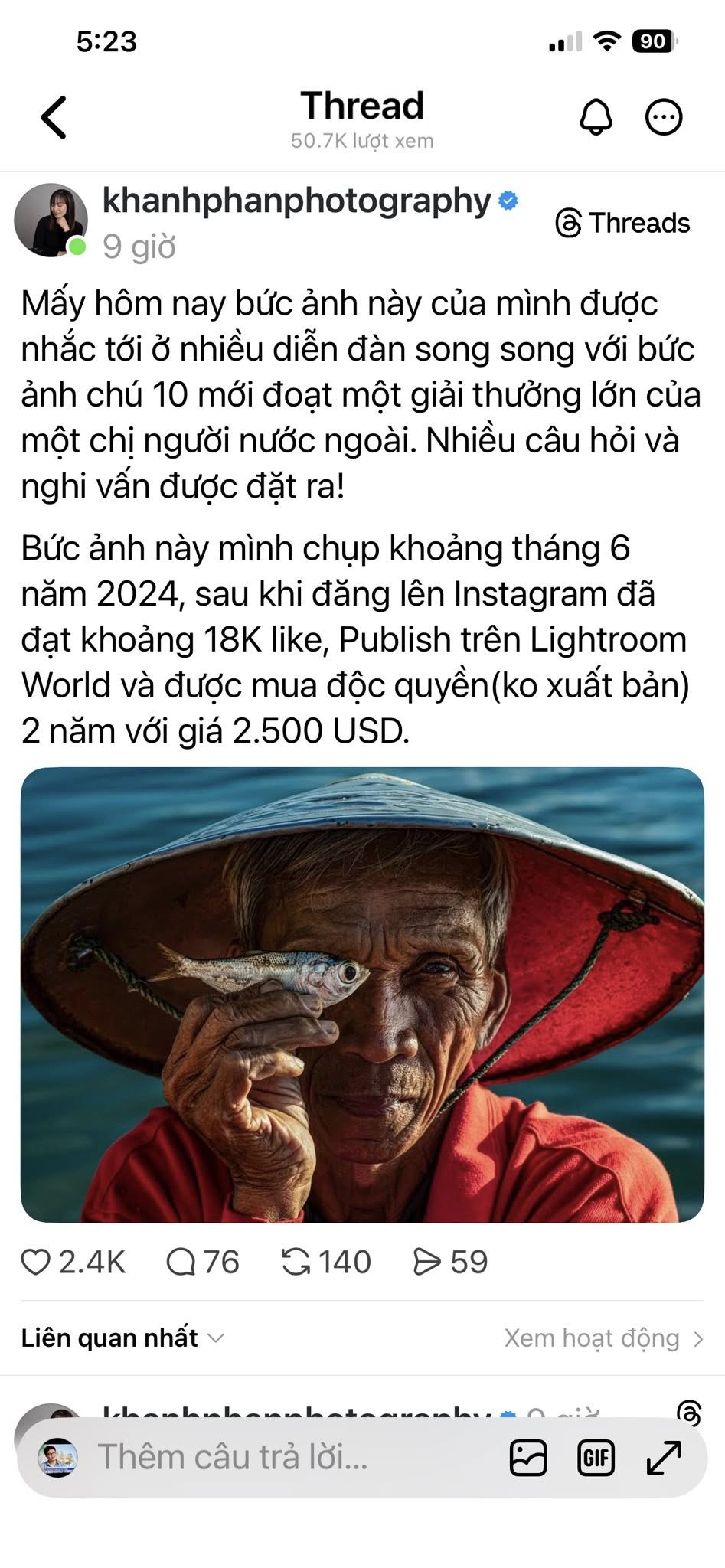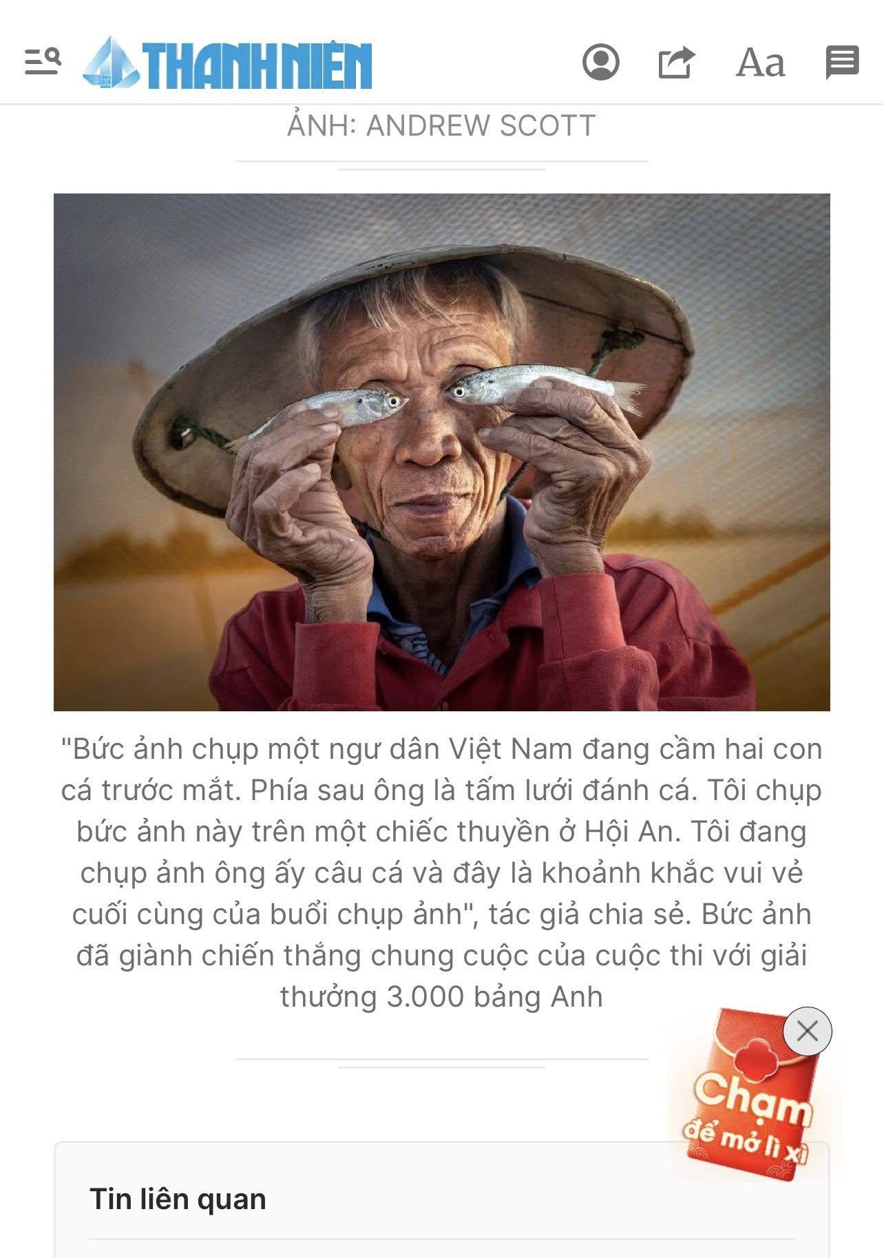 Tên tuổi các tác giả thắng giải của một cuộc thi nhiếp ảnh quốc tế danh giá vừa xướng lên, thì một ngọn lửa tranh luận bùng lên dữ dội. Câu chuyện về bức ảnh cụ ông Hội An cầm cá che mắt không chỉ là một màn so găng về nghệ thuật, mà còn là một tấm gương phản chiếu những vùng xám phức tạp giữa sáng tạo cá nhân, sự dàn dựng công phu và bản quyền trong thời đại kỹ thuật số.