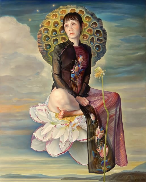 Nguyễn Đình Đăng, Sen ngũ sắc đại đóa, 2025, sơn dầu trên canvas, 162 x 130.3 cm