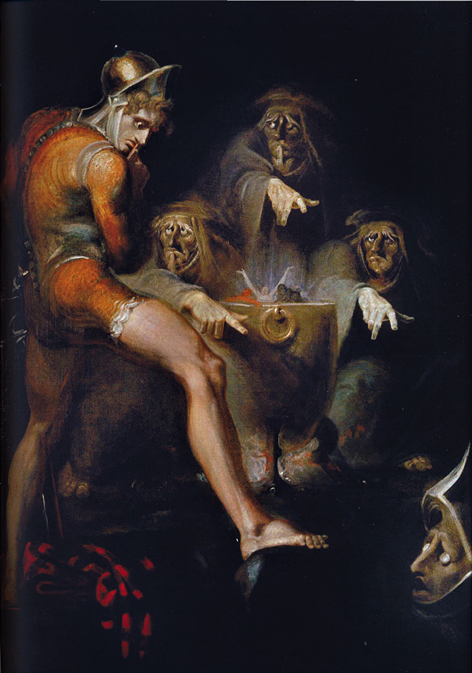 Heinrich Fusuli, Macbeth đang hỏi ý kiến bóng ma hiện hình đầu đội nón sắt, 1783,