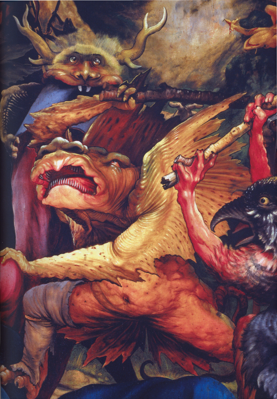 Mathias Grunewald, Sự cám dỗ Thánh Anthony, chi tiết trang thờ tại Isenheim, 1515,