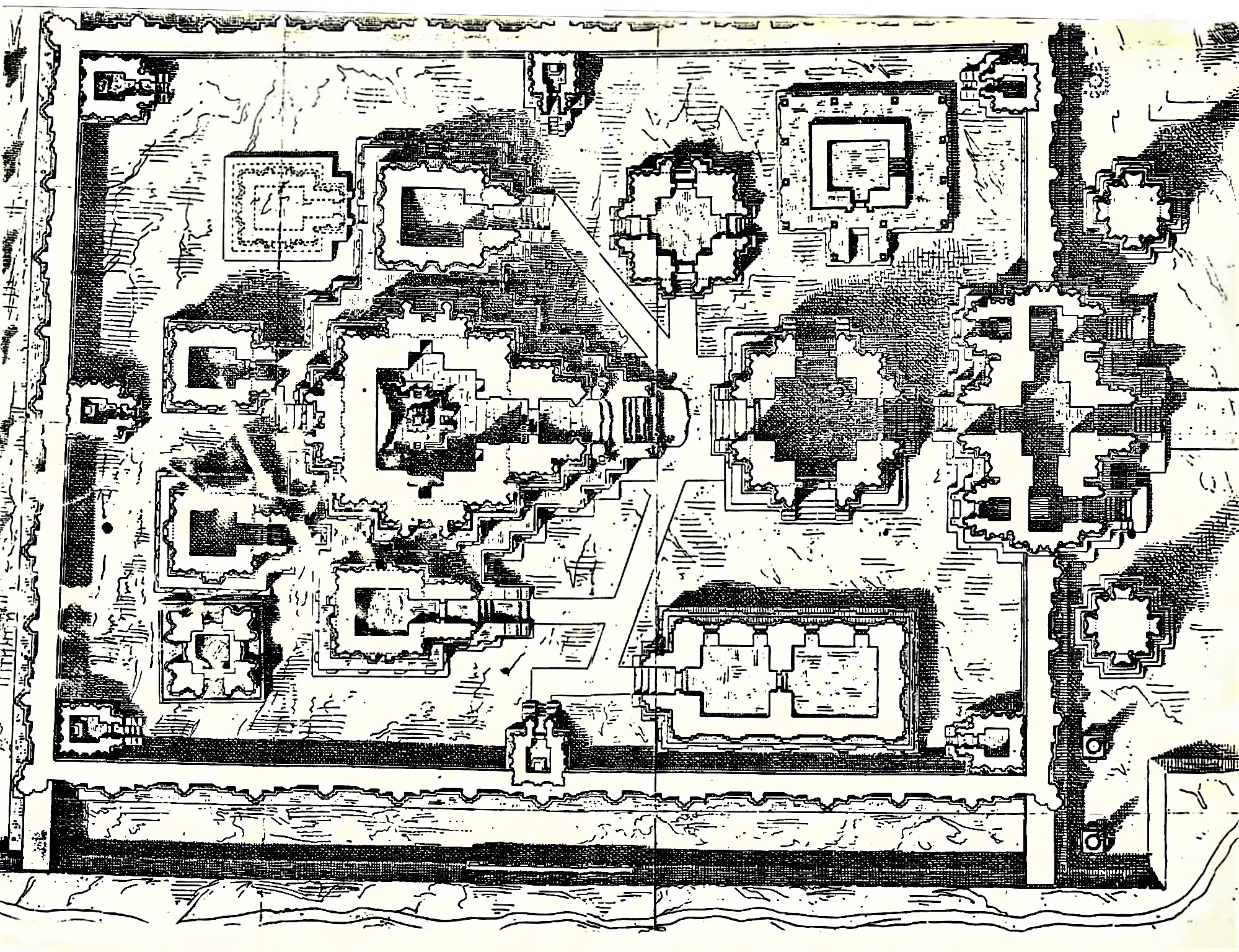 Bản vẽ mặt bằng đền thờ chính của vihara Đồng Dương thể hiện đồ hình mạn-đà-la (bản vẽ của Henri Parmentier)