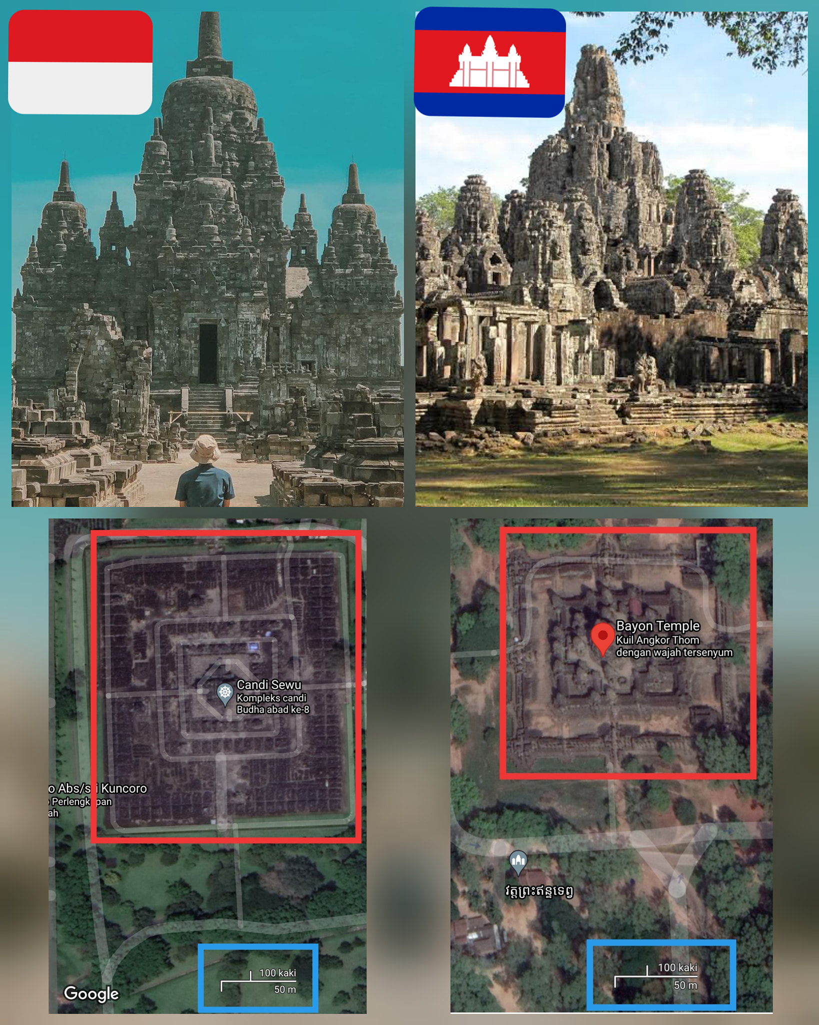 Đền Sewu ở Java xây vào tk. 8 và đền Bayon ở Cambodia xây vào cuối tk. 12, là một trong những ví dụ về mô hình kiến trúc bảo tháp và mạn-đà-la đặc trưng cho Phật giáo Kim Cương Thừa ở Đông Nam Á.