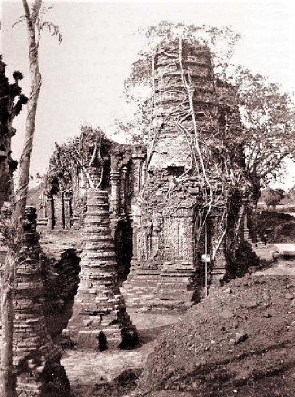 Một số bảo tháp lớn và nhỏ trong cụm tháp thờ phía Tây của Phật viện Đồng Dương (ảnh chụp của Charles Carpeaux, 1902)