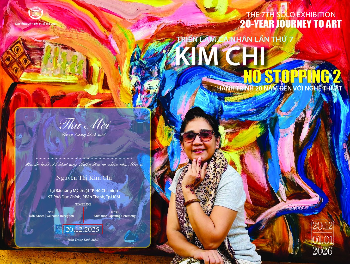 Với Kim Chi, “No Stopping 2” không chỉ là tên gọi mà còn là tinh thần của suốt hai thập niên sáng tạo: không dừng lại, không thoả hiệp, luôn giữ được sự trong trẻo bên trong mình. Một hành trình âm thầm nhưng mạnh mẽ, được xây bằng sự tận tụy, bằng trái tim hiền hòa, bằng niềm vui rất thật khi được vẽ.