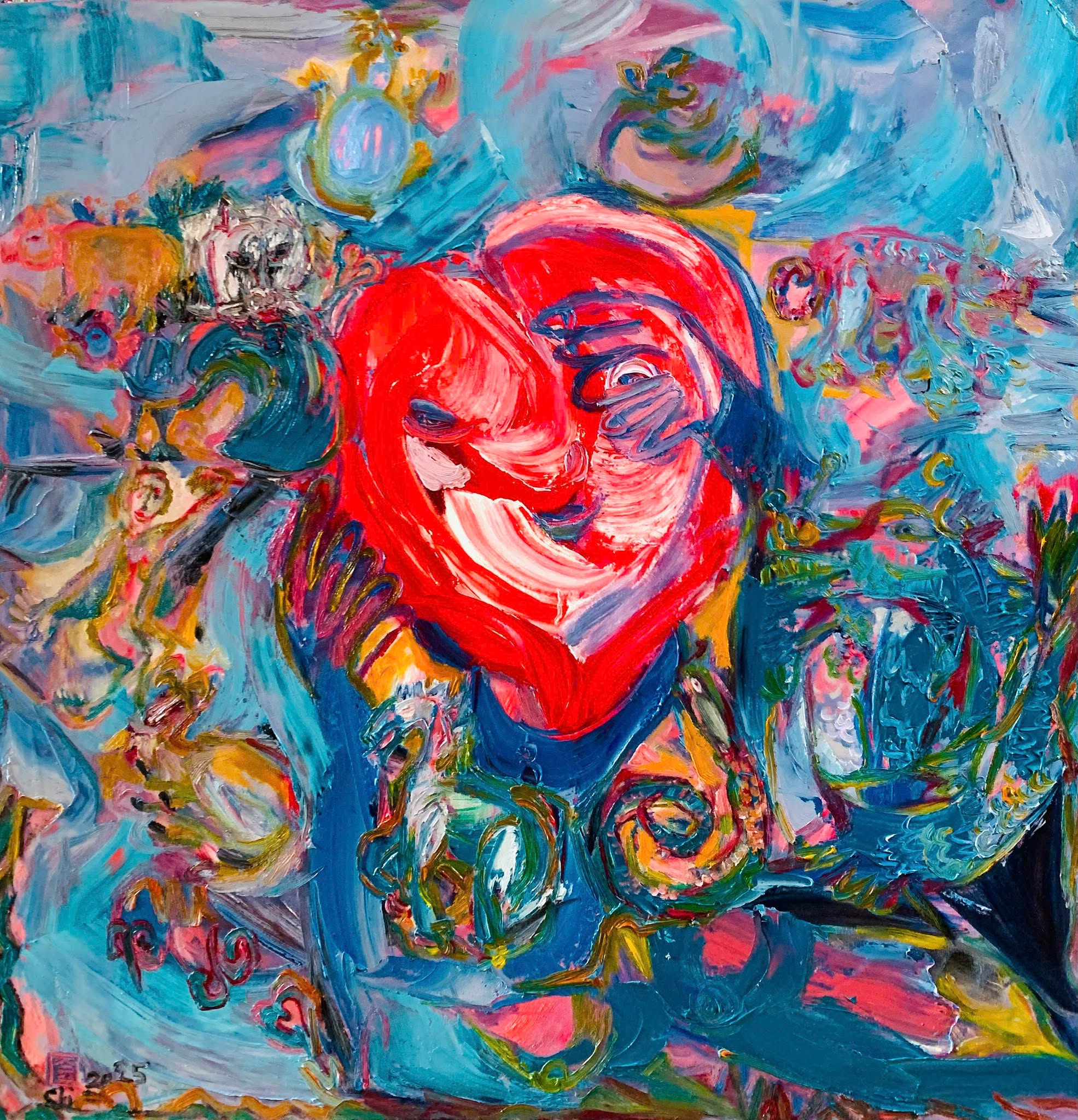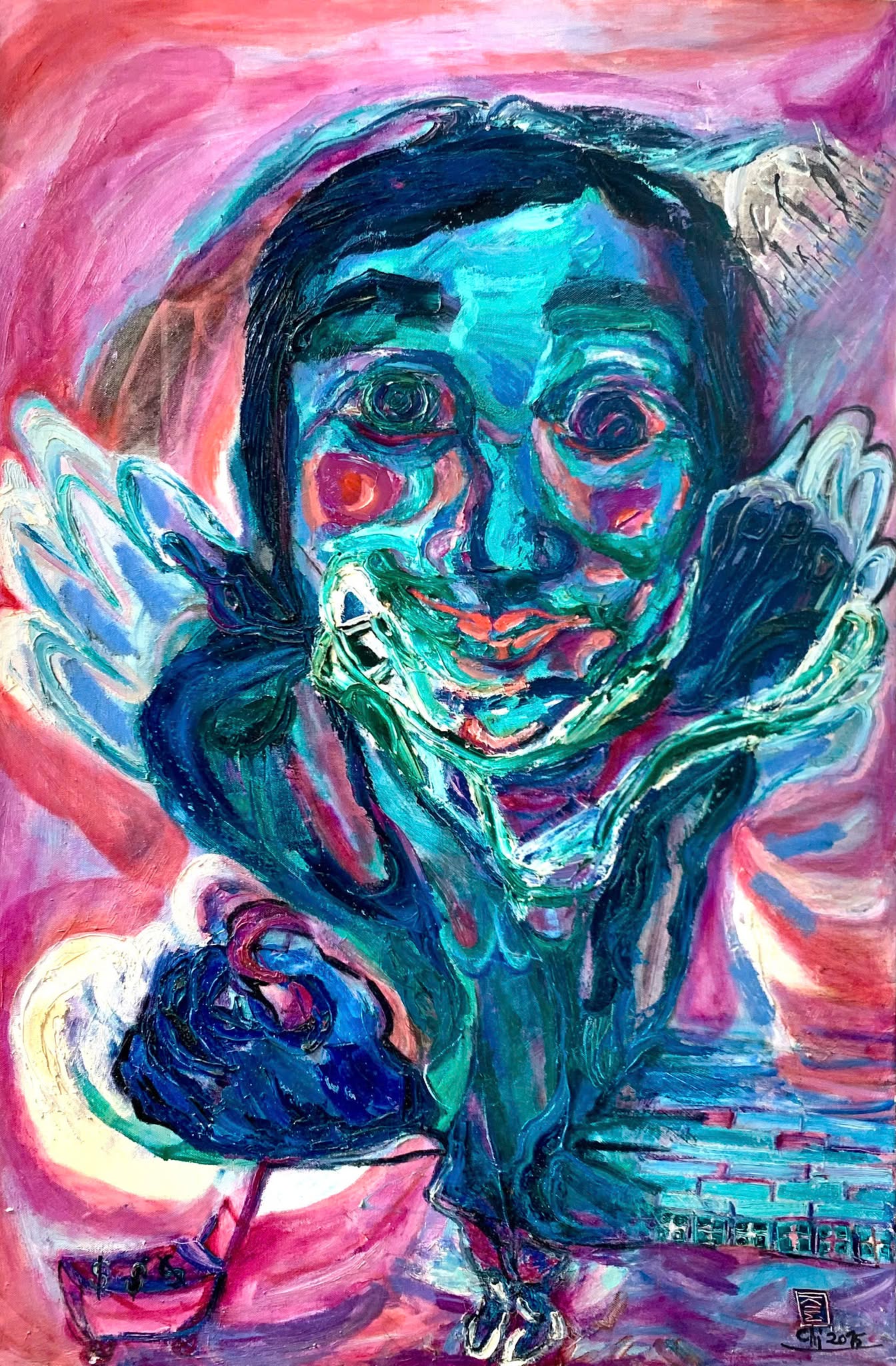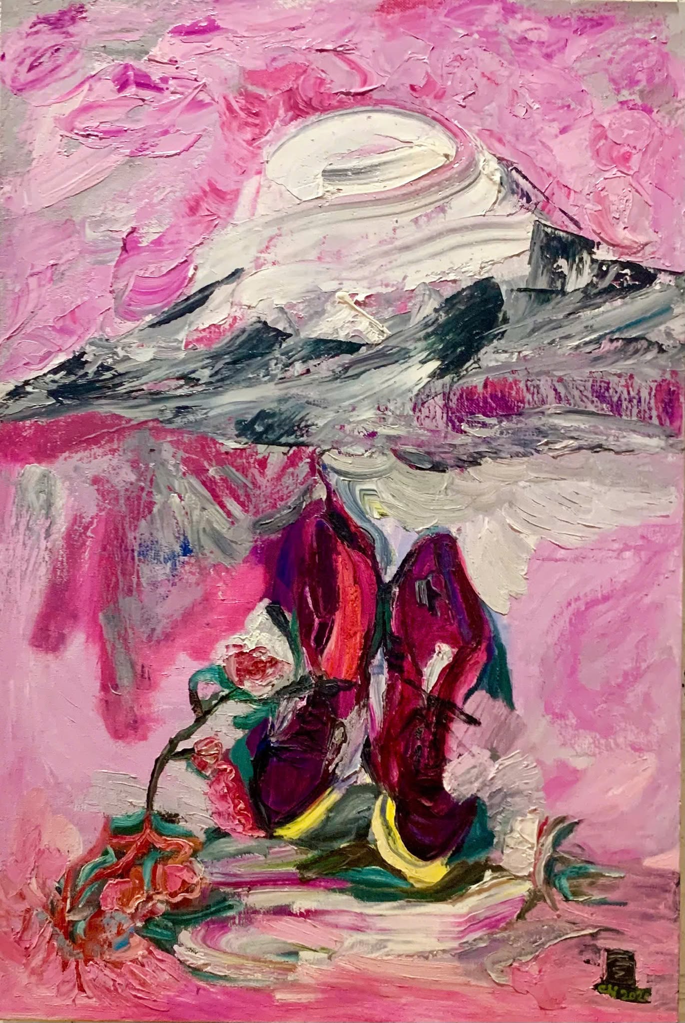 Tinh thần hướng về sự an hòa, sự tĩnh lặng trong đời sống tinh thần cũng hiện diện trong tranh chị, nhưng chỉ như một lớp giọng nền – nhẹ, thoảng, không nhấn mạnh. Các hình ảnh, vài biểu tượng quen thuộc như dấu vết của một đời sống hướng thiện, chứ không phải trọng tâm biểu đạt. Thứ mà người xem cảm nhận rõ hơn chính là sự bình thản và độ trong của cảm xúc: một thế giới được nhìn bằng đôi mắt giản dị, nơi mọi phức tạp được gạn lọc thành mảng màu nhẹ nhõm.