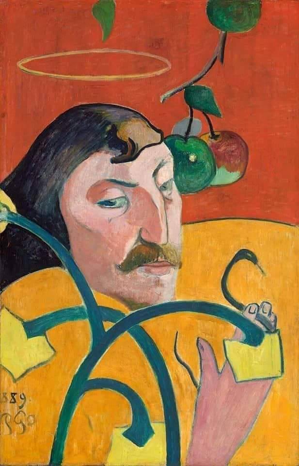 Paul Gauguin, Self-Portrait with Halo and Snake, 1889, oil painting on wood, 79 cm × 51 cm (National Gallery of Art, Washington, D.C.)