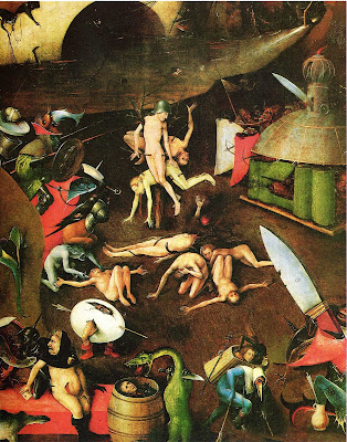 Và vì vậy, nghệ thuật đã phát huy hết khả năng của nó trong việc miêu tả sự xấu xí của quỷ. Nhưng cuộc cạnh tranh để miêu tả rõ nét sự xấu xí khiến chúng ta hoài nghi rằng, trên thực tế, một số người, bằng cách nào đó ngầm lấy làm khoái cảm thực sự trong cái cõi khủng khiếp và không chỉ trong những cảnh tượng khác nhau về địa ngục. Bạn không thể nói với tôi rằng một số địa ngục được tưởng tượng cốt để khiến các tín hữu khiếp sợ: chúng cũng được tưởng tượng để cho chúng ta xem một cú đá hậu rất tuyệt. Nếu chúng ta xem xét các cảnh sự Chiến thắng của thần Chết, với vẻ đẹp của bộ xương, hoặc bộ phim Cuộc Thương khó của Chúa Kitô của Mel Gibson, chúng ta có thể thấy sự kinh khủng như một nguồn khoái cảm. Friedrich Schiller đã viết trong một tiểu luận năm 1792 “Về nghệ thuật bi kịch”: