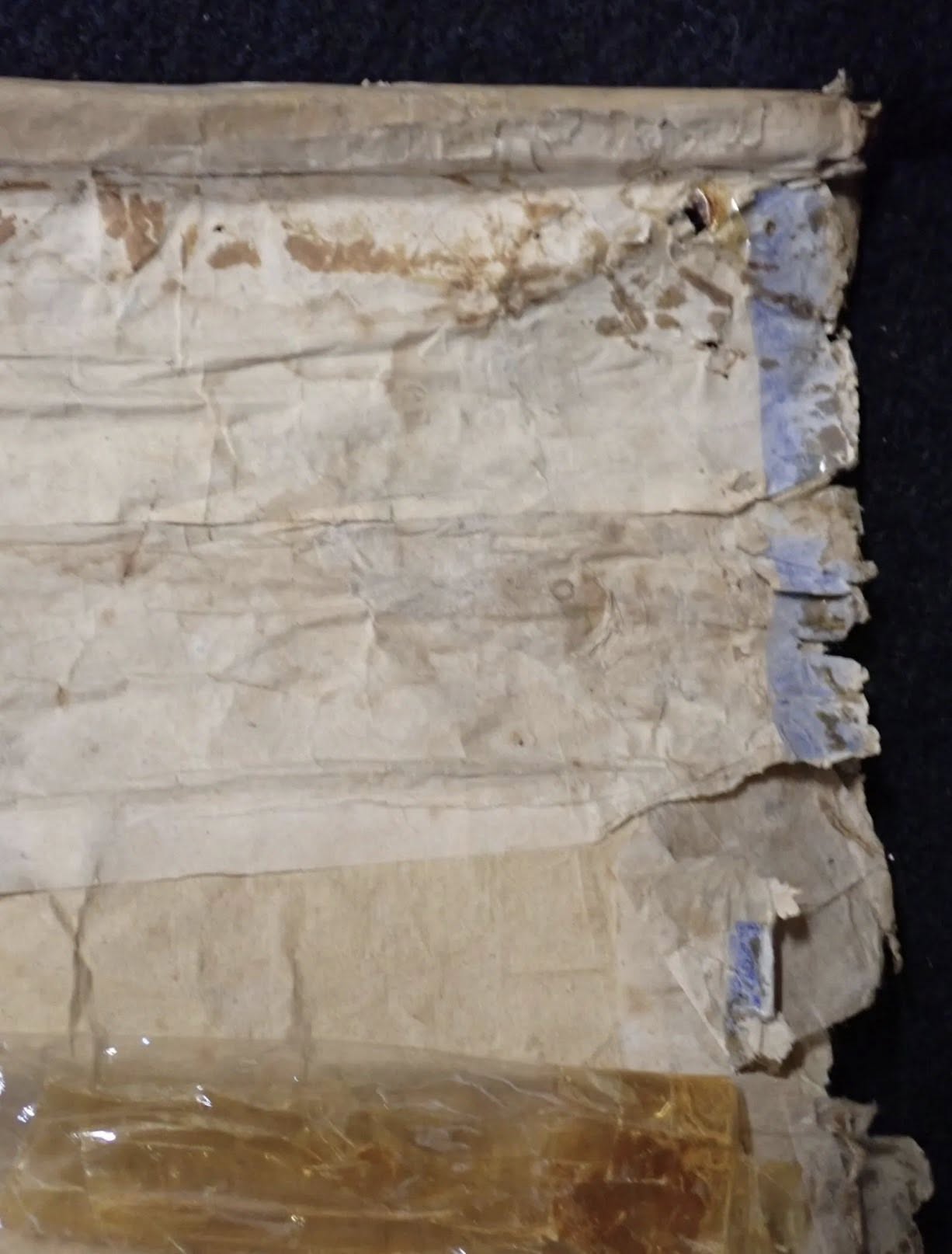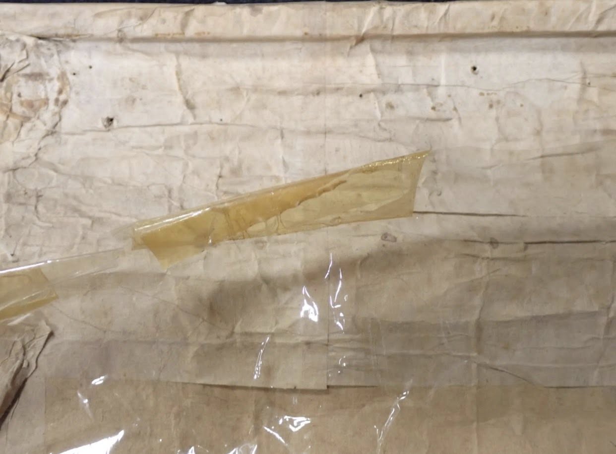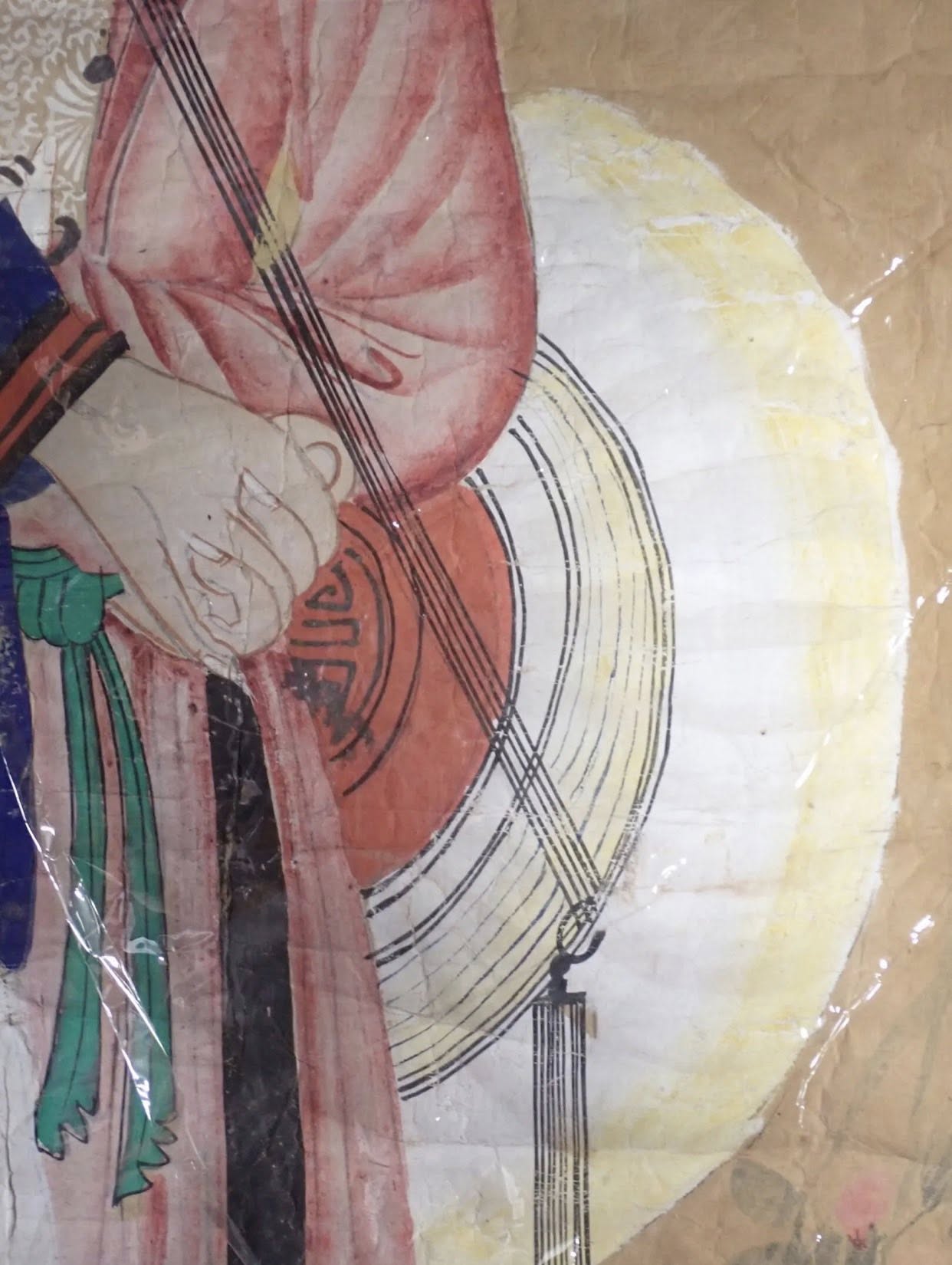 – Tình trạng hiện vật: do được bảo quản tương đối tốt, màu và mực vẫn tươi rõ. Có vài vết rách và nhàu không nghiêm trọng, giấy ố vàng nhẹ, một số chỗ còn dính băng keo.