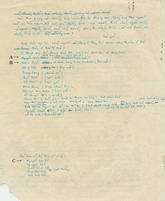 Chúng tôi rất cảm ơn chị Thuỵ Khuê đã cất công rà soát lại tài liệu và chỉ ra sự bất cẩn của chúng tôi. Quý báu thay việc phản biện và trao đổi ý kiến với nhau trong công việc nghiên cứu, mà thường thì lẻ loi và lầm lũi.