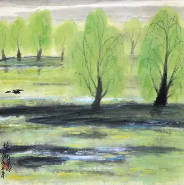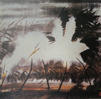 23. Lâm Phong Miên, Sếu, mực và màu trên giấy, 1974, Viện Mĩ thuật Thượng Hải