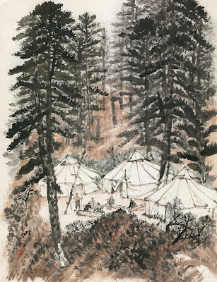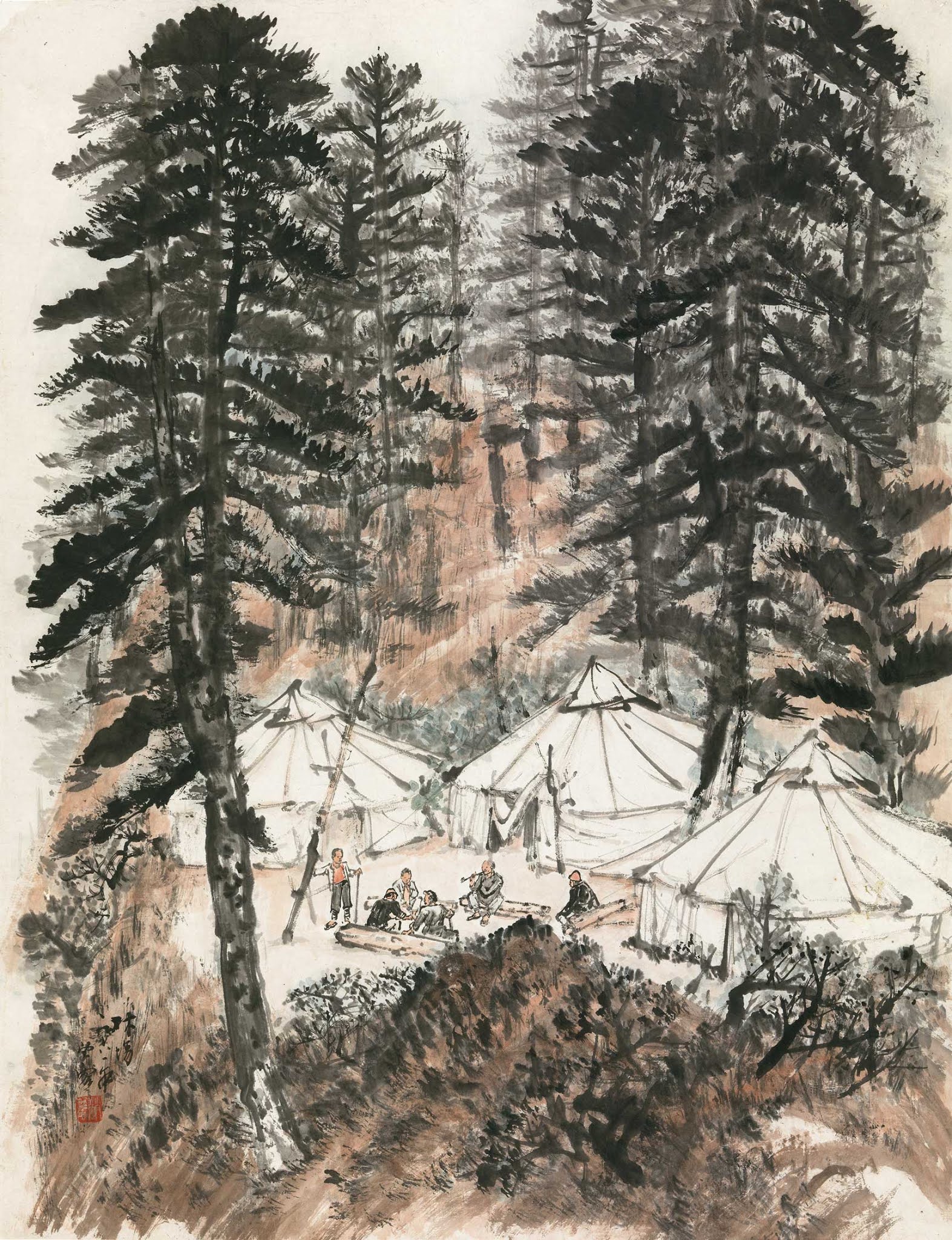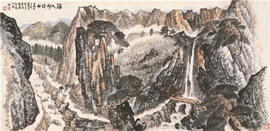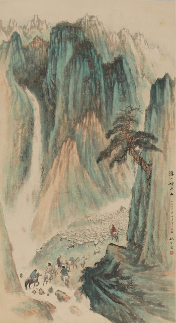 37. Triệu Vọng Vân, Thâm nhập Kì Liên Sơn, tranh cuốn ngang, mực và màu trên giấy, 1972, 83 x 150cm. Sưu tập tư nhân