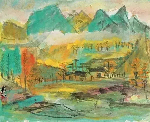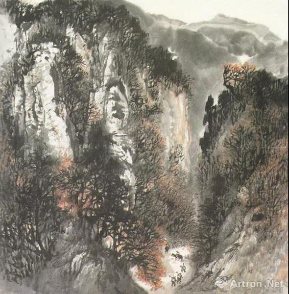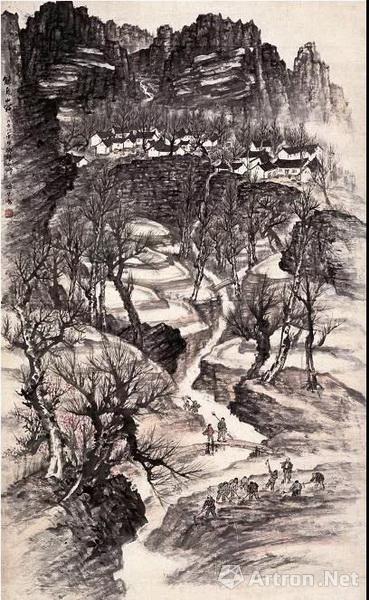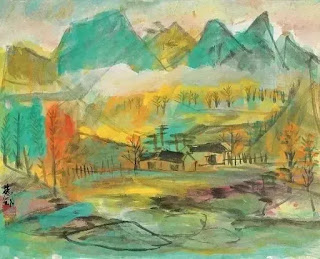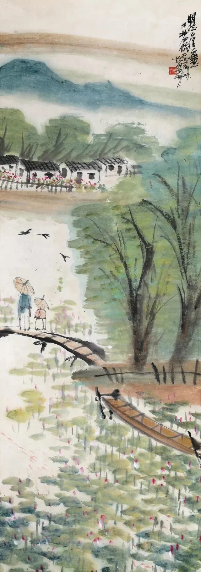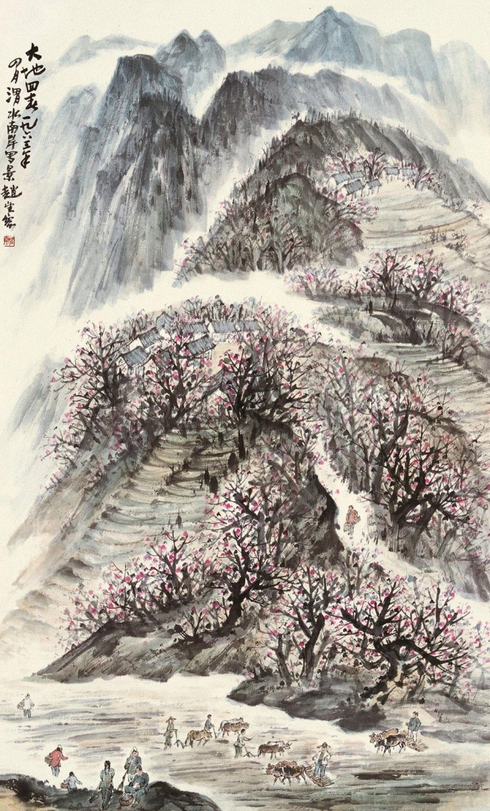38. Thạch Lỗ, Đường đến Nam Nê Loan, tranh cuốn dọc, mực và màu trên giấy, 1960. Bảo tàng Mĩ thuật Trung Quốc, Bắc Kinh