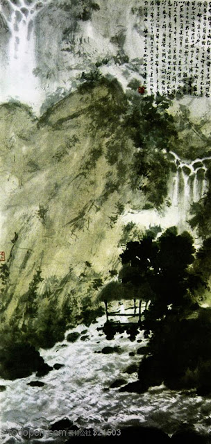 30. Phó Bão Thạch, Thính tuyền đồ, tranh cuốn dọc, mực và màu trên giấy, 1963. 110.5 x 52.8cm. Bảo Tàng Kỉ niệm Phó Bão Thạch, Nam Kinh