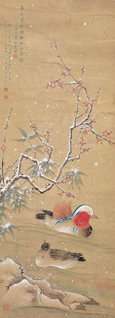 39. Thạch Lỗ, Mai hoa, tranh cuốn dọc, mực và màu trên giấy. 105 x 40.7. Bảo tàng Mĩ thuật Trung Quốc, Bắc Kinh