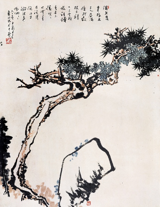 28. Phan Thiên Thọ, Tùng thạch, mực và màu nhạt trên giấy, 1960. 179.5 x 140.5cm