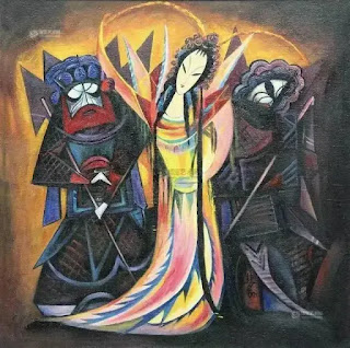 26. Phan Thiên Thọ, Nghỉ chốc lát, vẽ bằng ngón tay trên giấy, 1954. 224 x 105cm