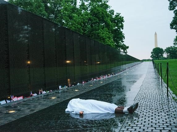 Đôi khi, Ocean Vuong tự dàn dựng những bức ảnh chính mình trong cuộc sống thường nhật hoặc ngược lại, theo một cách mang tính nghi lễ hơn. Ví dụ, trong tác phẩm Memorial, anh nằm xuống, phủ lên mình một tấm vải trắng như tấm liệm, trước Đài tưởng niệm chiến tranh Việt Nam ở Washington. Thân thể vô danh của anh gợi nhớ đến hàng triệu dân thường đã ngã xuống trong cuộc chiến.