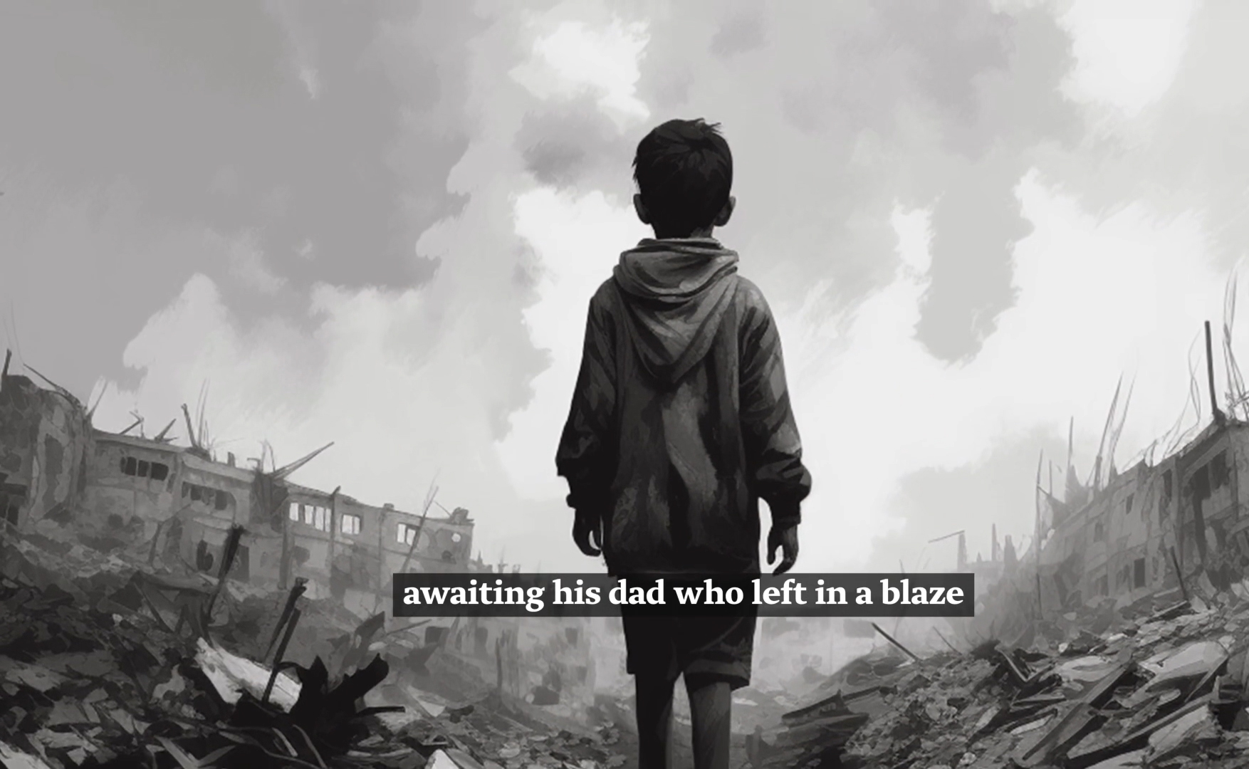 Giờ đây, câu chuyện về Abu Toha và hành trình của anh từ Gaza đến Mỹ, cùng với gia đình, đang được kể lại trên màn ảnh. Một bộ phim tài liệu dài 24 phút do TRT World sản xuất hiện đang được trình chiếu tại các liên hoan phim, mang đến cái nhìn sâu sắc hơn về tác động của cuộc chiến tranh Israel lên Gaza và việc chia sẻ đau khổ có thể giúp xoa dịu nỗi đau như thế nào. Kể từ khi chiến tranh bắt đầu từ tháng 10/2023 tới giờ, Israel đã giết chết gần 69.000 người Palestine ở Gaza, hầu hết là phụ nữ và trẻ em. Sau đây là một bài thơ, nhan đề “Không đề” (Untitled) của Mosab Abu Toha viết về các trận bom Gaza đã thổi đủ thứ màu của máu, bùn, đất lên các bức tường còn sót lại các tranh vẽ trẻ em: