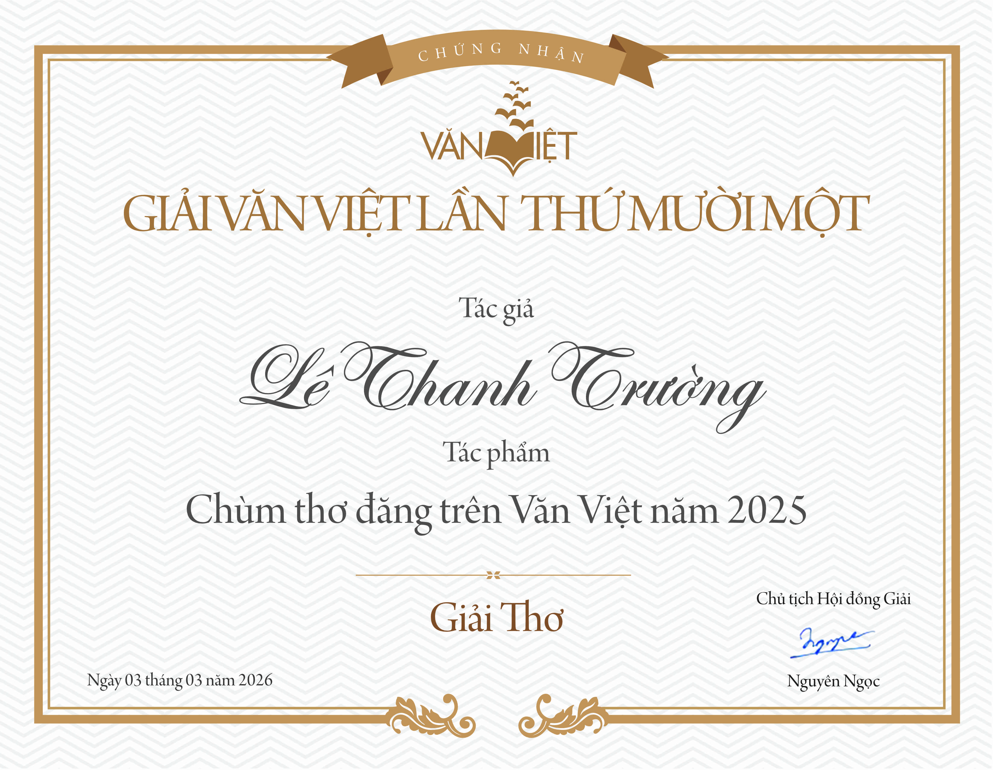 Hội đồng Giải Văn Việt đã thống nhất kết quả Giải Văn Việt lần thứ Mười Một (năm 2025) như sau: