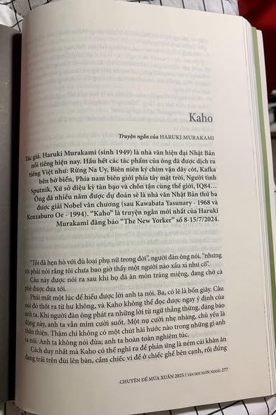 Tôi đã dịch một truyện ngắn đầu đề Kaho của H. Murakami (có lẽ là một phần trong cuốn tiểu thuyết mới này) đăng trên sách chuyên đề Viết & Đọc số Mùa Xuân 2025.