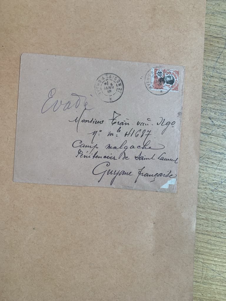 Trong cuộc đời có những bức thư gửi tới đúng địa chỉ nhưng vì một lý do nào đó lại không có người nhận. Có thể người nhận đã di chuyển, có thể người nhận đã qua đời… Trong lịch sử tù đày của những người yêu nước chúng ta không thiếu những câu chuyện đó. Lật tìm hồ sơ của những chí sĩ ái quốc trong nhà tù tại xứ Guyane Nam Mỹ, chúng tôi bắt gặp một lá thư có đủ cả phong bì gửi từ Nam Kỳ – tên gọi Nam Bộ thời thuộc địa Pháp – và một mảnh giấy xé ra từ tờ giấy kẻ ca rô khổ A4.