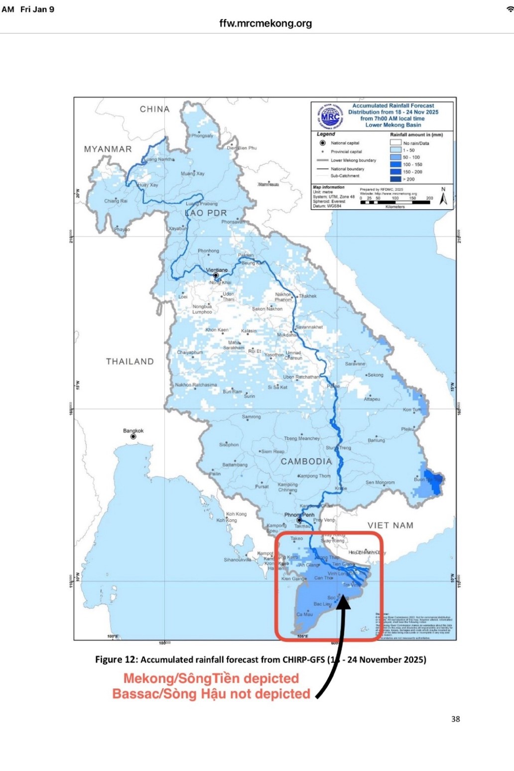 Đây là một cảnh báo nghiêm túc và rất đáng suy ngẫm về tính chính xác khoa học và trung lập địa lý trong các sản phẩm bản đồ – dữ liệu của Mekong River Commission. Việc Sông Hậu (Bassac) – một nhánh phân lưu mang gần 50% lưu lượng, đóng vai trò then chốt về phù sa, đa dạng sinh học và chống xâm nhập mặn – bị làm mờ hoặc “biến mất” trên nhiều bản đồ gần đây không còn là lỗi kỹ thuật thuần túy, mà đã chạm đến chuẩn mực khoa học và trách nhiệm thể chế.