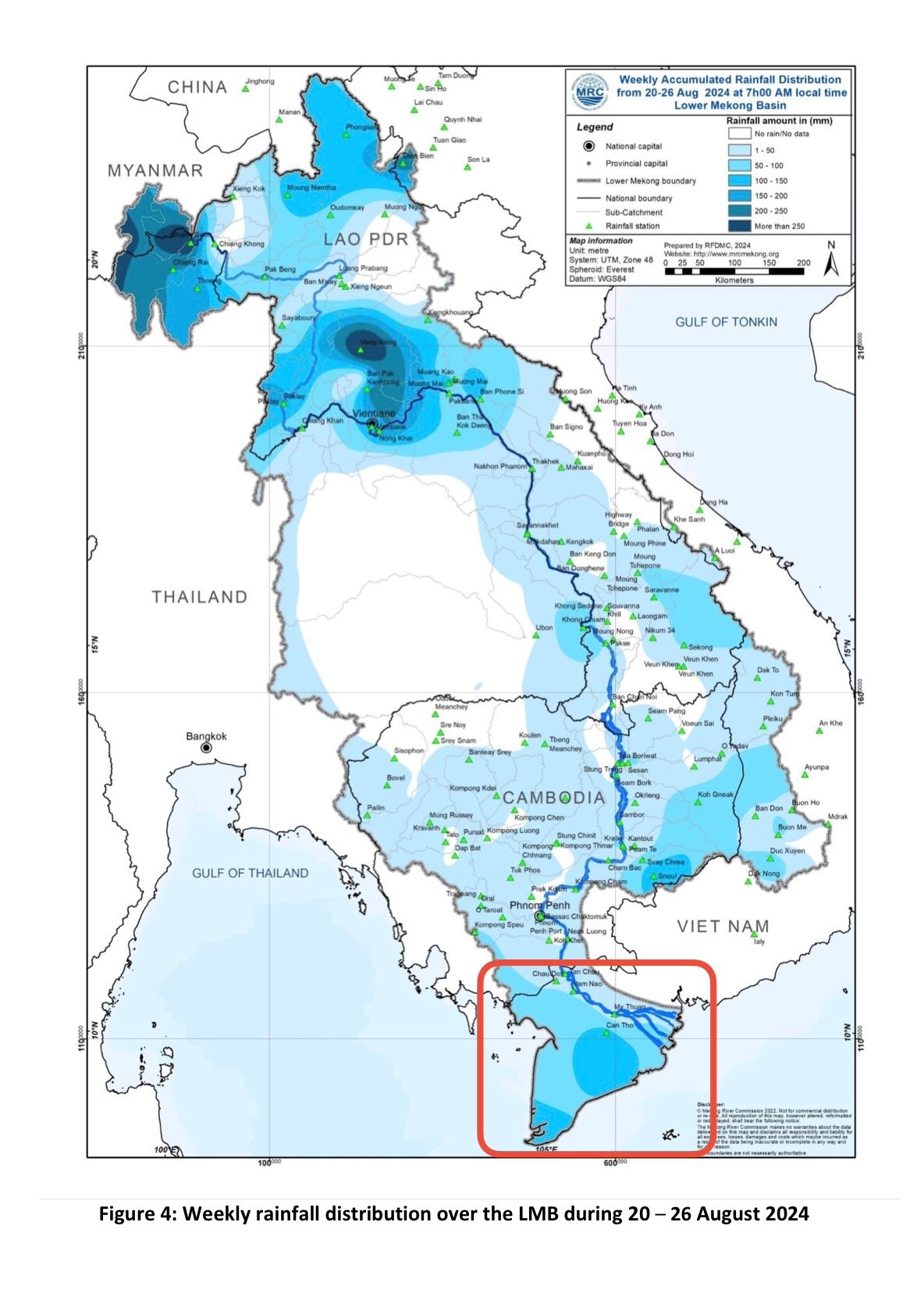 Báo cáo tình hình mùa khô hàng tuần ở hạ lưu sông Mê Kông từ ngày 20 – 26 tháng 8 năm 2024.