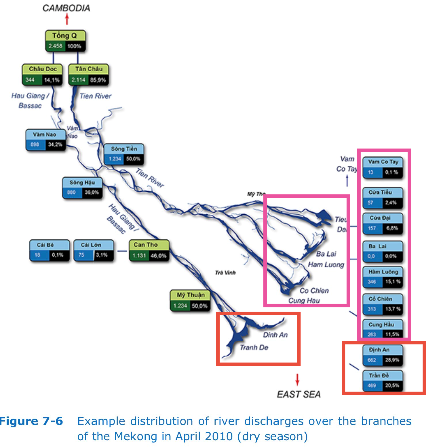Hình 7-6 Dòng chảy cao nhất là từ hai nhánh của sông Hậu