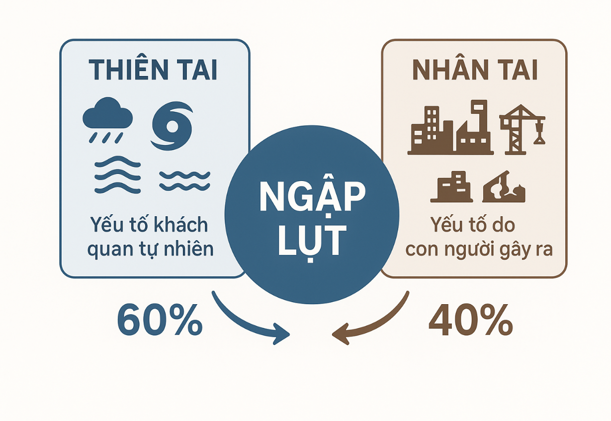 Ngập lụt gần đây cho thấy: thiên tai có xu hướng cực đoan, nhưng mức độ thiệt hại phụ thuộc nhiều vào khả năng chuẩn bị và thích ứng của con người. Nhận diện đúng phần nhân tai là bước quan trọng để giảm thiệt hại, vì phần này hoàn toàn có thể kiểm soát.