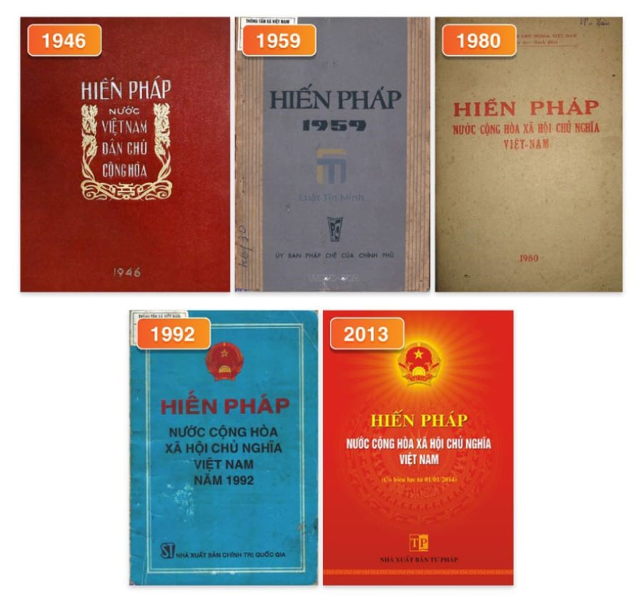 Tính đến nay, Việt Nam đã ban hành năm bản Hiến pháp vào các năm: 1946, 1959, 1980, 1992 (sửa đổi năm 2001) và 2013. Các bản Hiến pháp này đều phản ánh từng giai đoạn lịch sử và định hướng cho đường lối chính trị chung của công cuộc xây dựng đất nước.