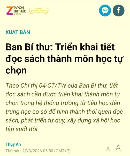 Thực ra, từ lâu, việc đọc sách trong trường học đã được quy định, mà ví dụ gần nhất là Thông tư 16/2022/TT-BGDĐT của Bộ Giáo dục và Đào tạo quy định rõ tiêu chuẩn thư viện tại các cơ sở giáo dục mầm non và phổ thông, trong đó có nội dung liên quan đến “tiết đọc sách” hay “tiết đọc thư viện”. Cụ thể, tại Điểm c Khoản 2 Điều 4 của thông tư, “Đảm bảo tối thiểu 03 tiết/học kỳ/lớp đối với trung học cơ sở” và “02 tiết/học kỳ/lớp đối với tiểu học”. Tuy nhiên, hoạt động và hiệu quả đọc của thư viện như thế nào có lẽ chúng ta đều đã rõ. Nay, nâng lên một bước, là đọc sách trở thành môn học tự chọn.